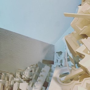 Projected onto Dell Walkers Negative Spaces Interrupted,. A tangible visualisation of empty space. A confusion of angles. A place filled. It suggests the feminism of Luce Irigary, mother earth, the female, empty. That men feel they need to fill up. As this was a projection the audience walked through, we are all part of the space, all people get to fill the emptiness.